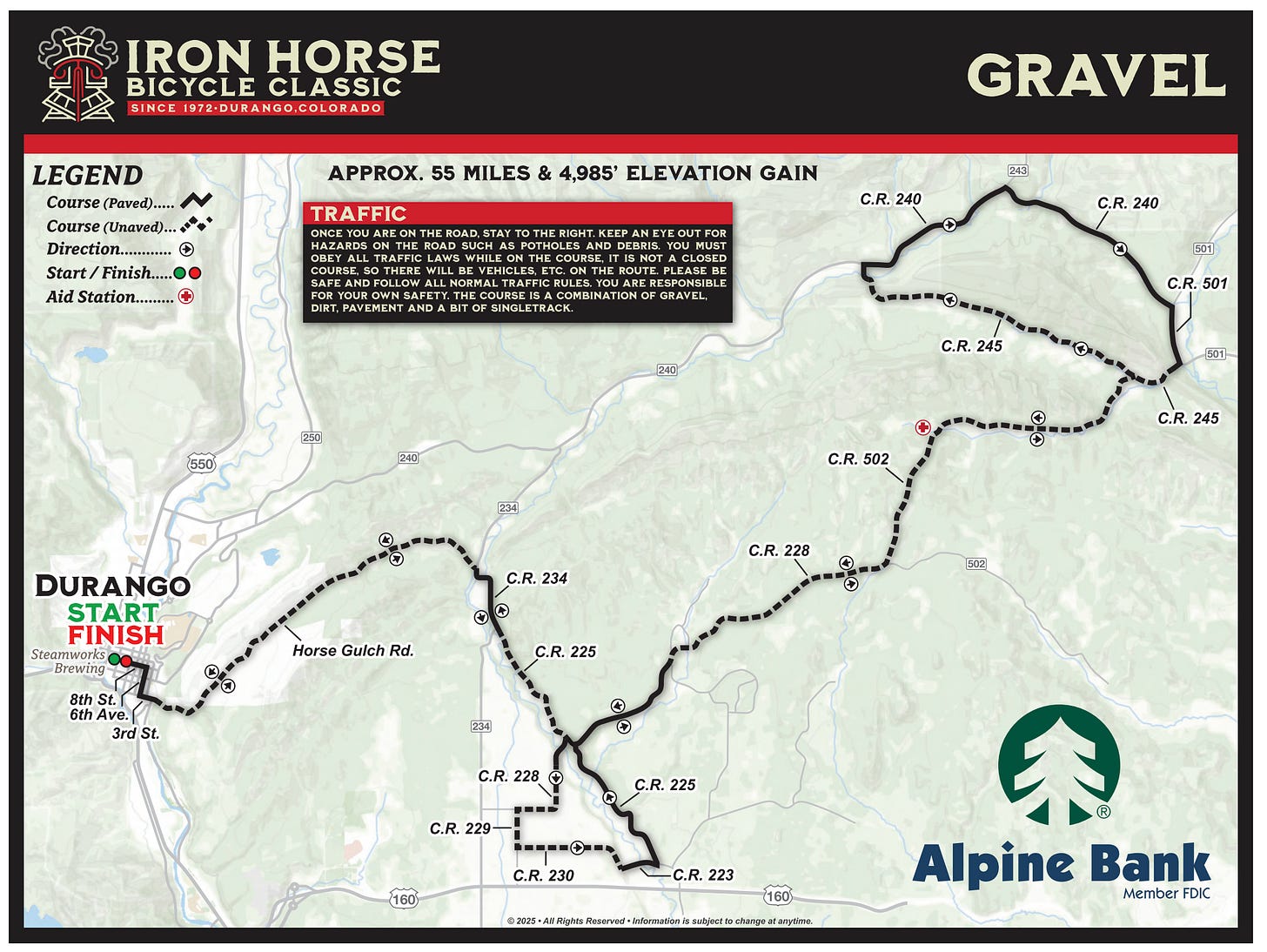 Also in Durango, the Iron Horse Bicycle Classic announced today that its gravel race on Sunday, May 24, will serve as the Colorado Gravel State Championships.